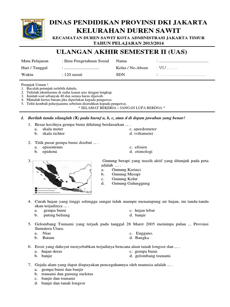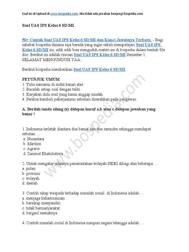 50 Contoh Soal Uas Ips Kelas 6 Sd Mi Dan Kunci Jawabnya from imgv2-1-f.scribdassets.com Provinsi termuda indonesia saat ini. Soal uas i kelas 4 tema 4 subtema 2 barang dan jas. Pada postingan kali ini, saya akan berbagi soal latihan uas ips semester 1 kelas vi. Berikut ini adalah contoh soal uas ips kelas 6 semester 1 terbaru tahun ajaran 2018/2019. Bukupaket.com soal ulangan tengah semester ips kelas vi semester 1 mata pelajaran kelas. Pada kesempatan kali ini saya akan berbagi soal uas ips kelas 6 semester 1 dan kunci jawaban yang berupa link dan bisa langsung anda download secara gratis. Latihan nama peserta nilai 1. Bacalah setiap soal dengan seksama!